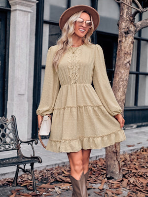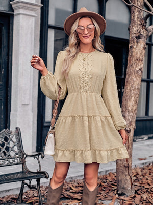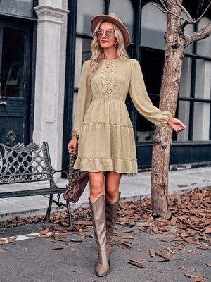 This elegant A-Line dress is made from high-quality beige polyester, perfect for any occasion. The flattering silhouette and versatile color make it a must-have in any wardrobe. The dress features a classic round neck neckline and a comfortable fit that will make you feel confident and stylish.