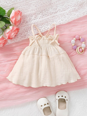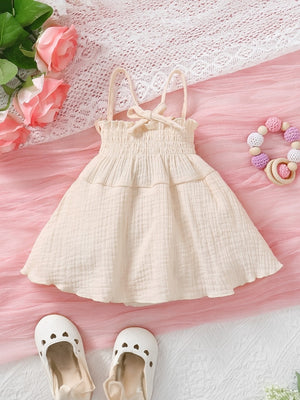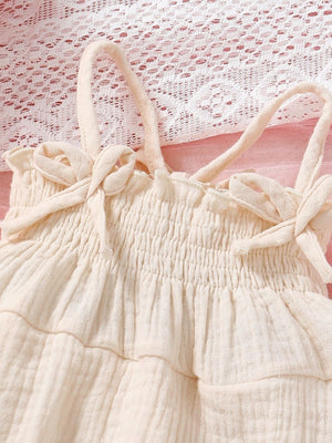 Beige A-Line Shoulder Straps Solid Sleeveless Cotton Dress