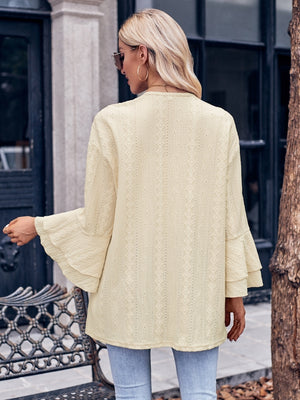 Introducing our Beige Long Sleeve Collarless Polyester Jacket, a stylish and versatile addition to your wardrobe. Made from high-quality polyester fabric, this top offers a comfortable and breathable fit. The round neck design adds a touch of elegance, while the black color provides a timeless and sophisticated look.