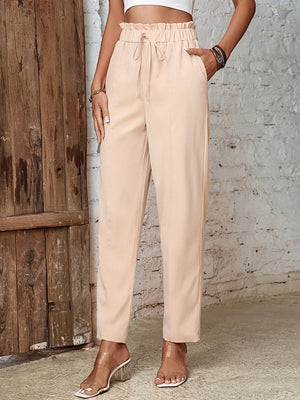 Achieve a polished look with these beige polyester trousers, perfect for a sophisticated appearance.
