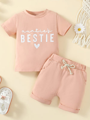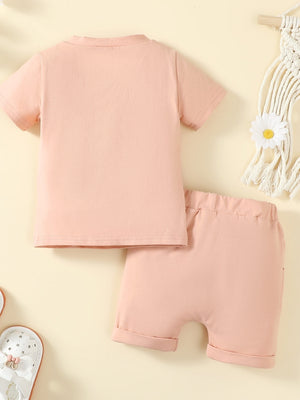 Beige Round Neck Short Sleeves Printed Top & Shorts Cotton Blend Set