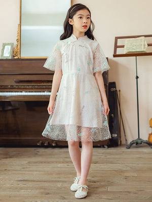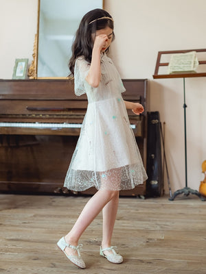 Beige V-Neck Casual A-Line Typography Polyester Knee Length Dresses