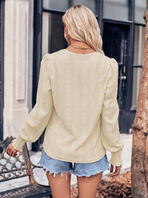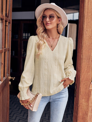 Beige V-Neck Polyester Top
