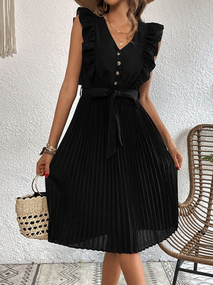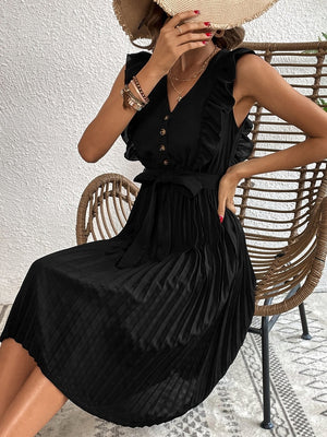 This elegant A-Line dress is made from high-quality black polyester, perfect for any occasion. The flattering silhouette and versatile color make it a must-have in any wardrobe. The dress features a classic v-neck neckline and a comfortable fit that will make you feel confident and stylish.