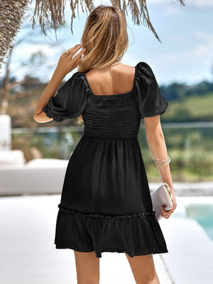 This elegant A-Line dress is made from high-quality black polyester, perfect for any occasion. The flattering silhouette and versatile color make it a must-have in any wardrobe. The dress features a classic square neck neckline and a comfortable fit that will make you feel confident and stylish.