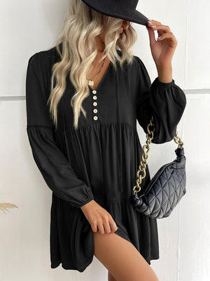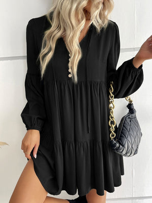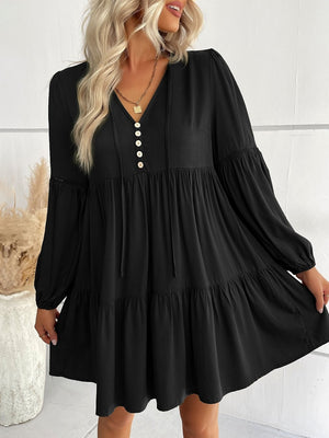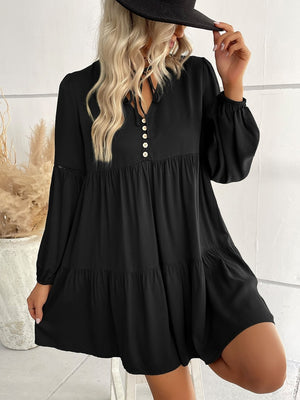 This elegant A-Line dress is made from high-quality black viscose rayon, perfect for any occasion. The flattering silhouette and versatile color make it a must-have in any wardrobe. The dress features a classic v-neck neckline and a comfortable fit that will make you feel confident and stylish.