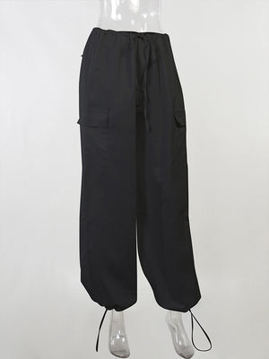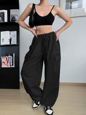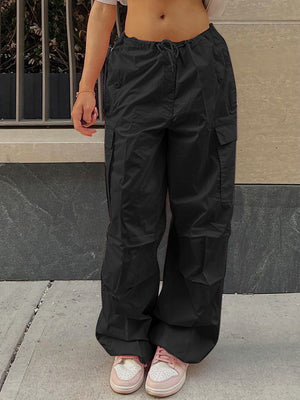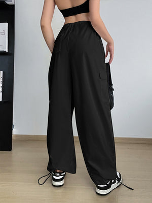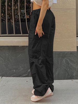 Elevate your everyday wear with these black baggy trousers, featuring a loose fit for a laid-back yet trendy look.