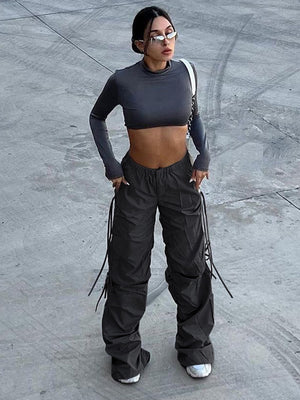 Elevate your everyday wear with these black baggy trousers, featuring a loose fit for a laid-back yet trendy look.