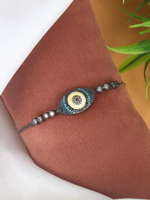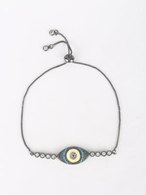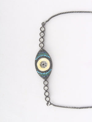 Black & Blue Brass Cubic Zirconia Brass-Plated Handcrafted Charm Bracelet