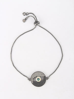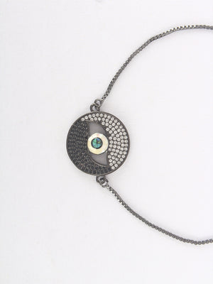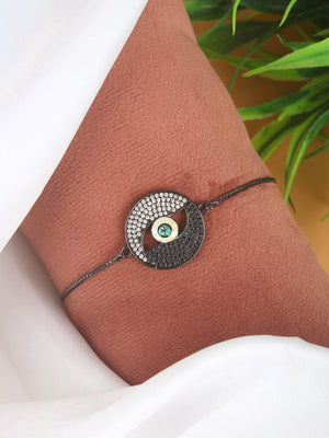 Black & Blue Brass Cubic Zirconia Brass-Plated Handcrafted Charm Bracelet