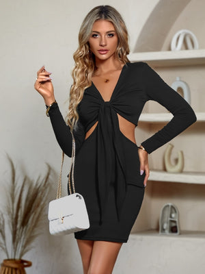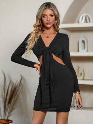 Black Bodycon Cut-Out Polyester Dress