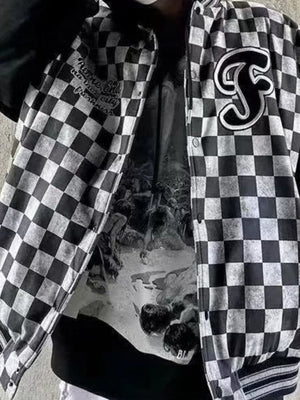 Black Collarless Long Sleeves Checked Polyester Open Front Jacket