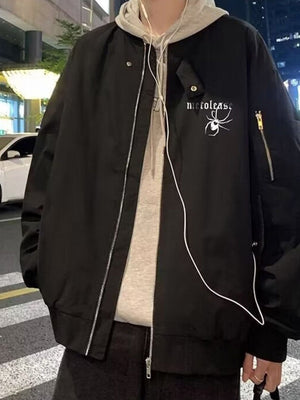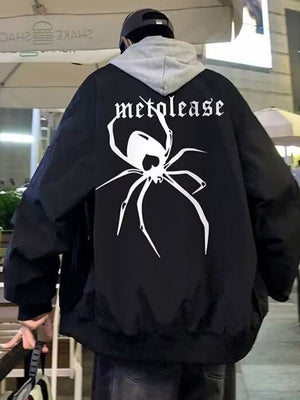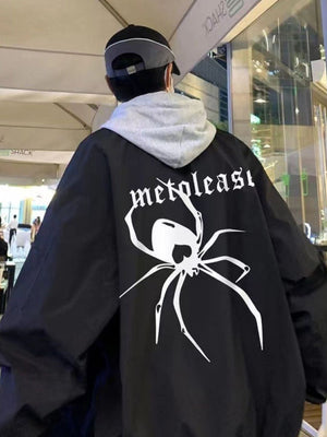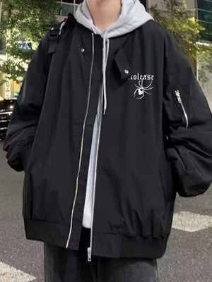 Black Collarless Long Sleeves Graphic Polyester Open Front Jacket