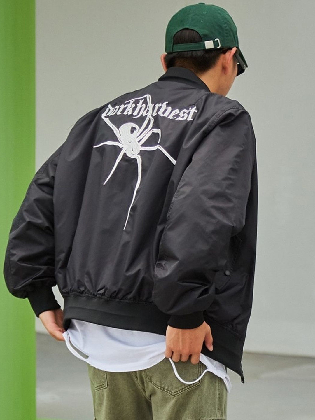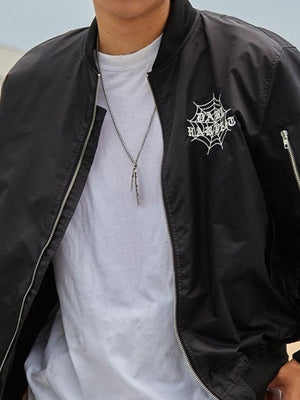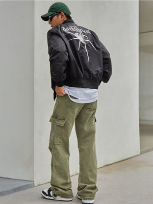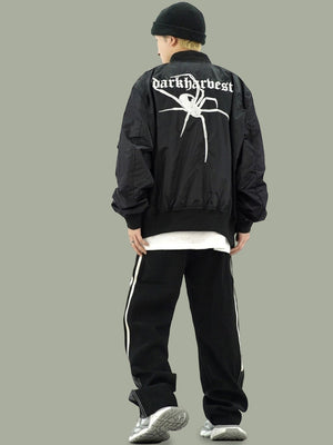 Black Collarless Long Sleeves Graphic Polyester Open Front Jacket