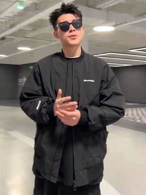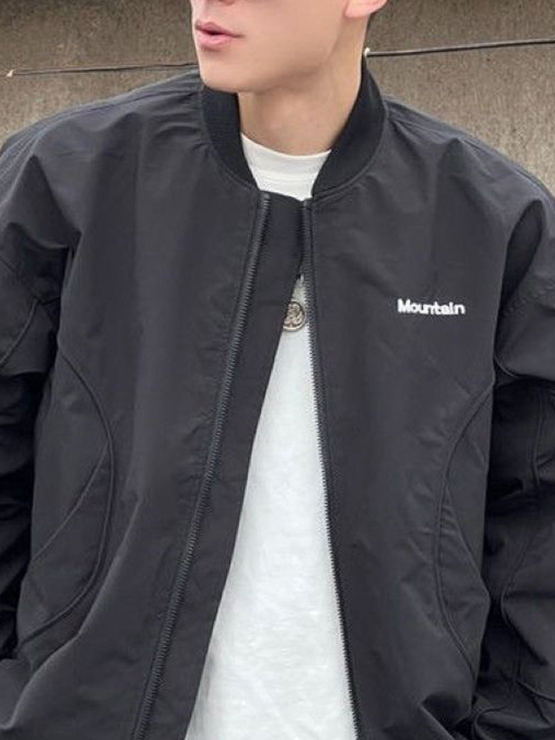 Black Collarless Long Sleeves Typography Polyester Open Front Jacket