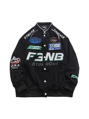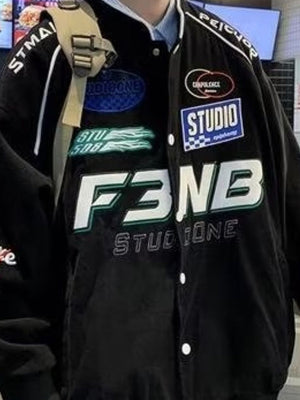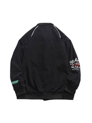 Black Collarless Long Sleeves Typography Polyester Open Front Jacket