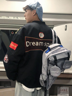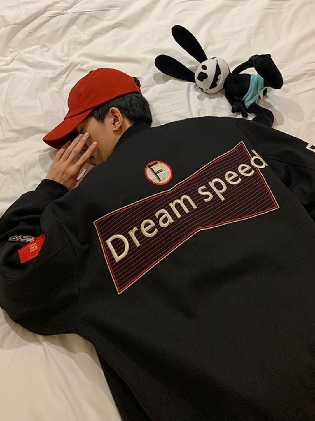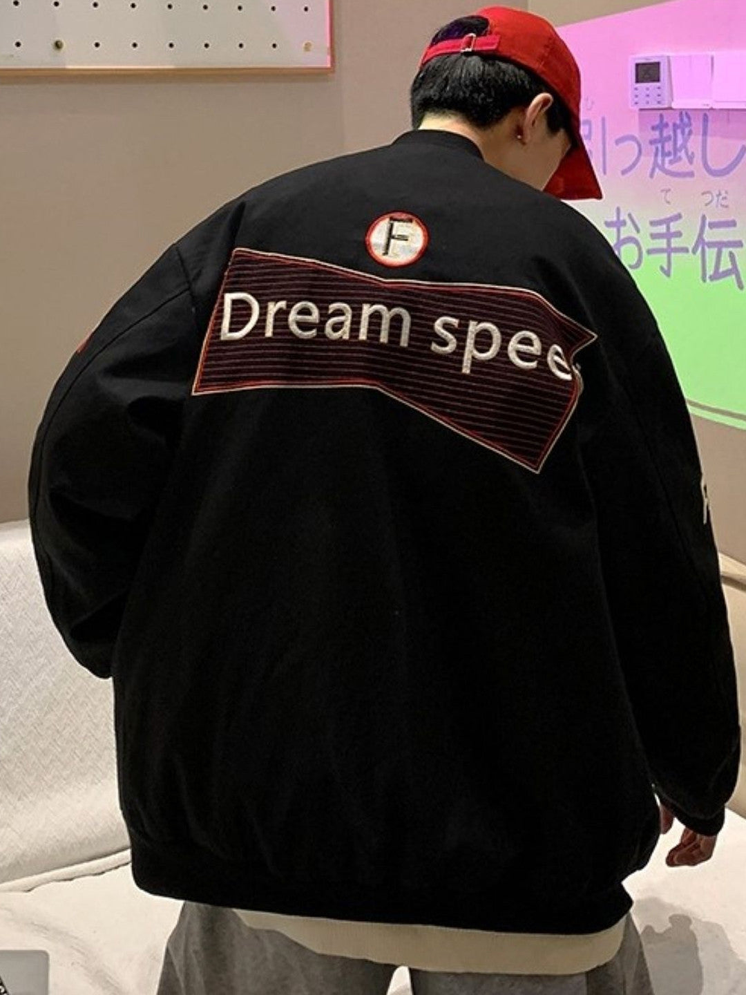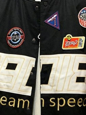 Black Collarless Long Sleeves Typography Polyester Open Front Jacket