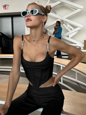 Introducing our Black Crop Top, a stylish and versatile addition to your wardrobe. Made from high-quality polyester fabric, this top offers a comfortable and breathable fit. The shoulder straps design adds a touch of elegance, while the black color provides a timeless and sophisticated look.