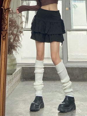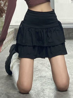Black Flared Above Knee Casual Cotton Solid Skirt