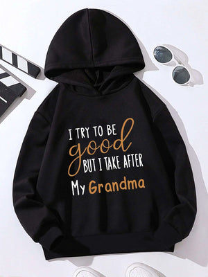 Black Graphics Printed Long Sleeves Polyester Hoodie