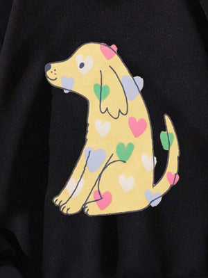 Black Graphics Printed Long Sleeves Polyester Hoodie