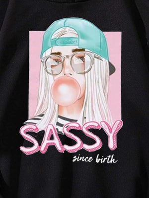 Black Graphics Printed Long Sleeves Polyester Hoodie
