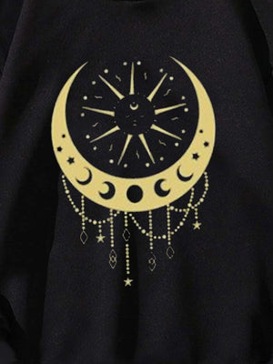 Black Graphics Printed Long Sleeves Polyester Hoodie