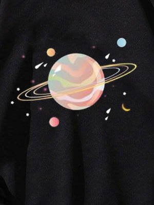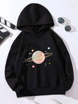 Black Graphics Printed Long Sleeves Polyester Hoodie
