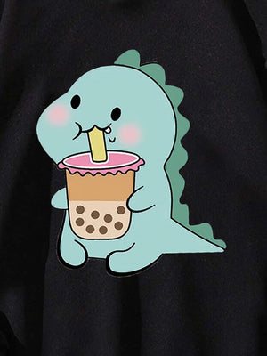 Black Graphics Printed Long Sleeves Polyester Hoodie
