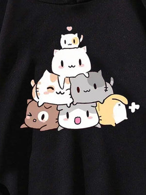 Black Graphics Printed Long Sleeves Polyester Hoodie