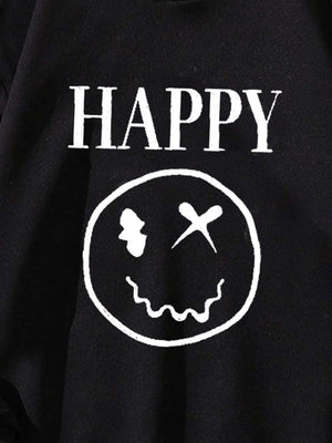 Black Graphics Printed Long Sleeves Polyester Hoodie