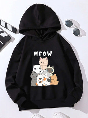 Black Graphics Printed Long Sleeves Polyester Hoodie