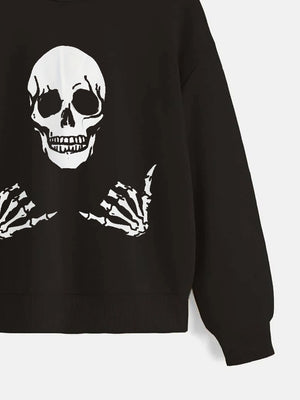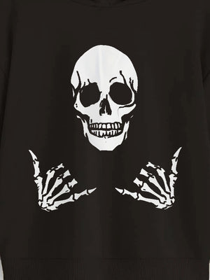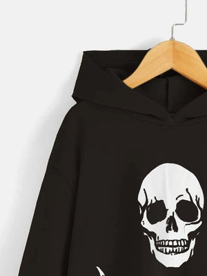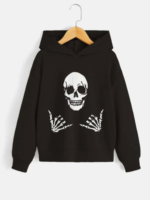 Black Graphics Printed Long Sleeves Polyester Hoodie