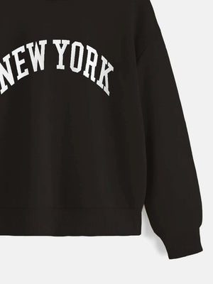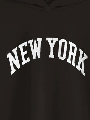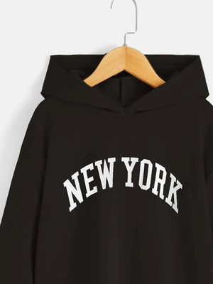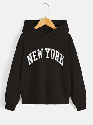 Black Graphics Printed Long Sleeves Polyester Hoodie