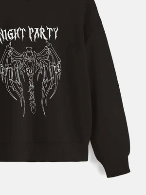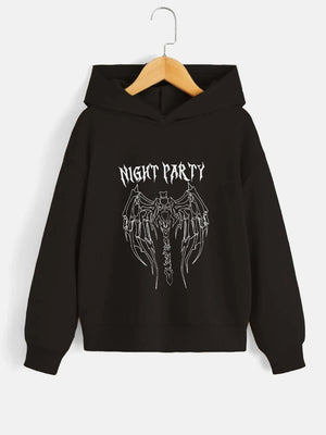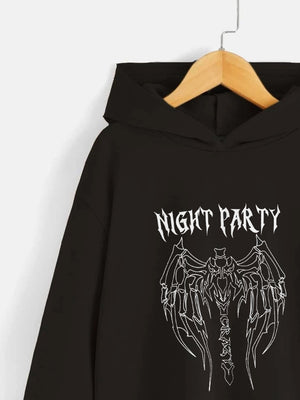 Black Graphics Printed Long Sleeves Polyester Hoodie