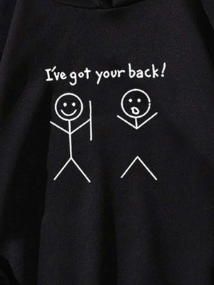 Black Graphics Printed Long Sleeves Polyester Hoodie