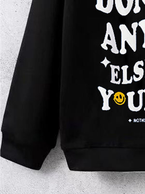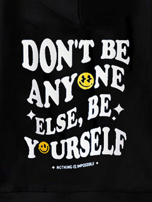 Black Graphics Printed Long Sleeves Polyester Hoodie