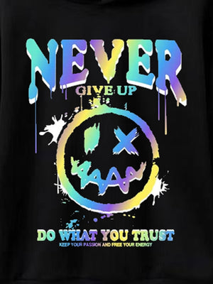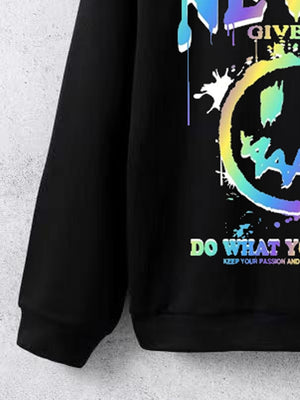 Black Graphics Printed Long Sleeves Polyester Hoodie