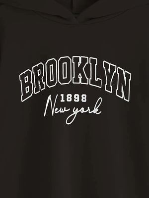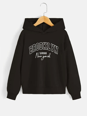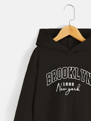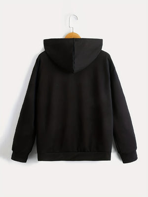 Black Graphics Printed Long Sleeves Polyester Hoodie