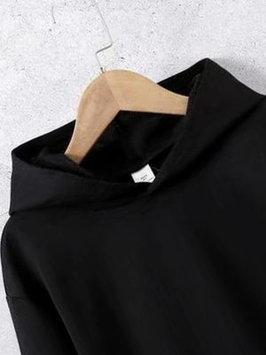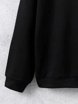 Black Graphics Printed Long Sleeves Polyester Hoodie