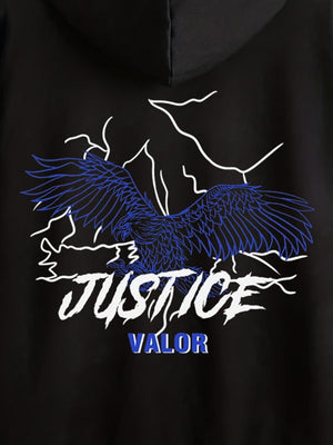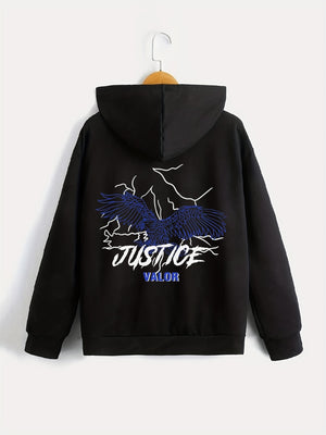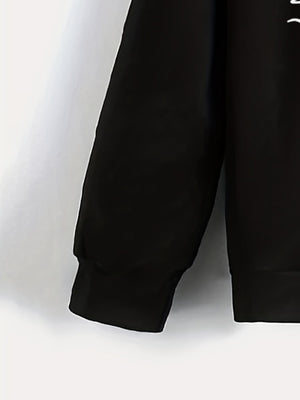 Black Graphics Printed Long Sleeves Polyester Hoodie