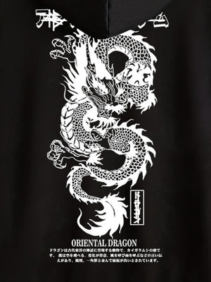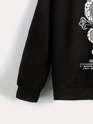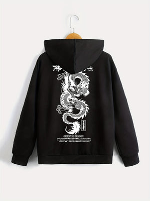 Black Graphics Printed Long Sleeves Polyester Hoodie