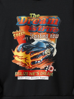 Black Graphics Printed Long Sleeves Polyester Hoodie