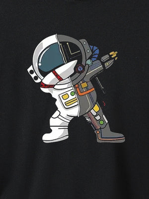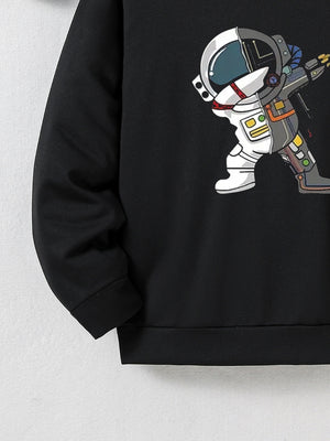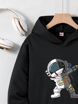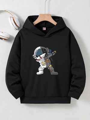 Black Graphics Printed Long Sleeves Polyester Hoodie