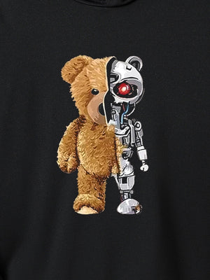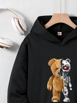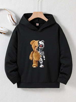Black Graphics Printed Long Sleeves Polyester Hoodie