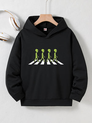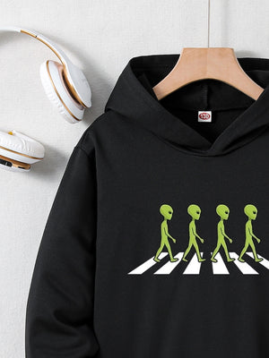Black Graphics Printed Long Sleeves Polyester Hoodie