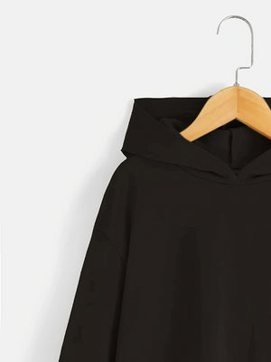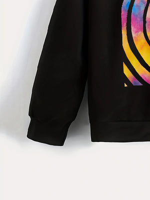 Black Graphics Printed Long Sleeves Polyester Hoodie