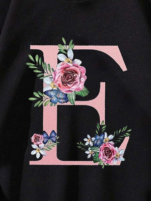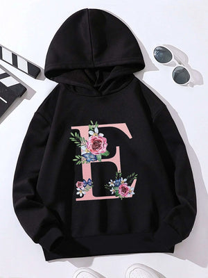 Black Graphics Printed Long Sleeves Polyester Hoodie
