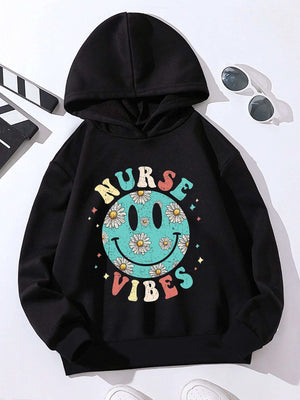 Black Graphics Printed Long Sleeves Polyester Hoodie