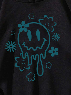 Black Graphics Printed Long Sleeves Polyester Hoodie